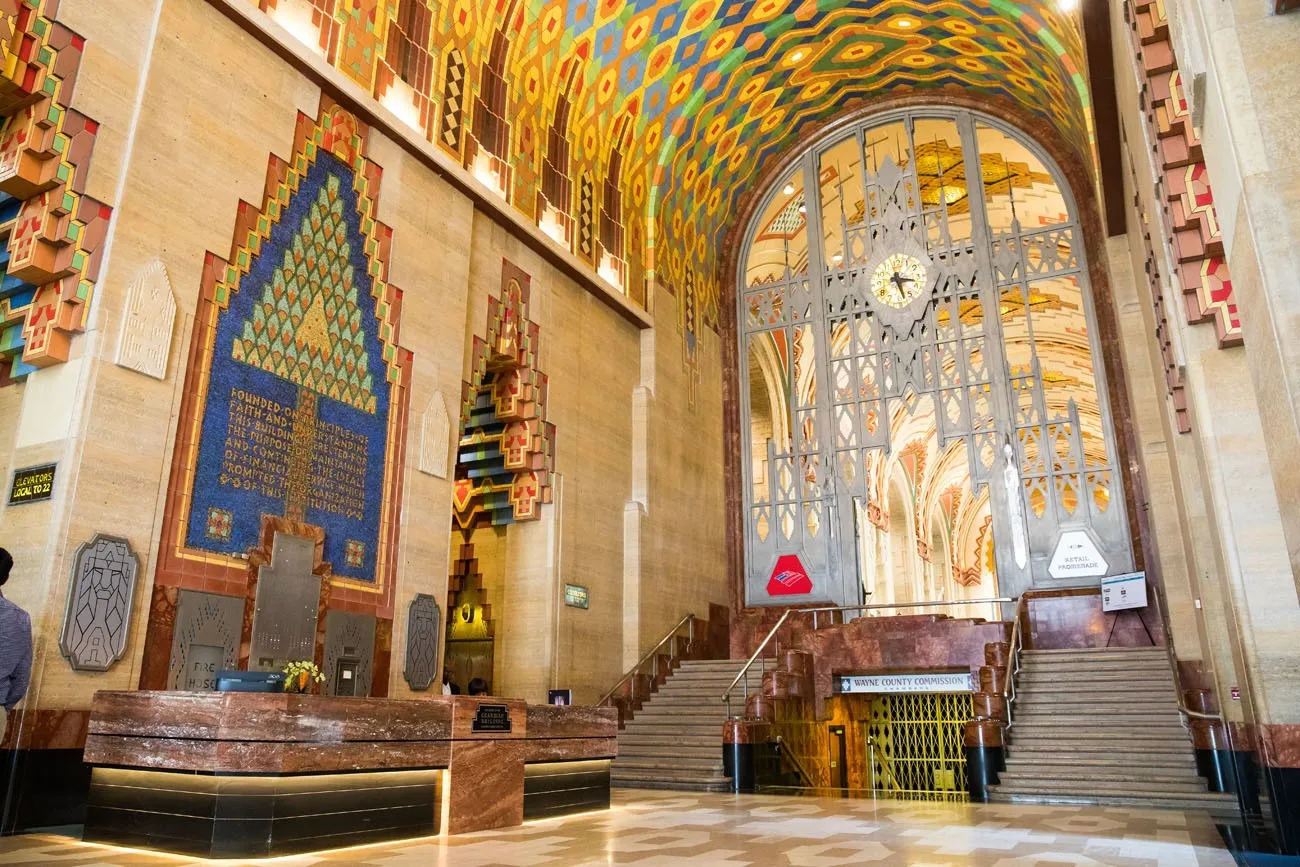 The Guardian Building is another Detroit landmark and a great example of Art Deco design. I was blown away by this building. Itโ€™s gorgeous inside (and free to visit). If you only had time to tour one of Detroitโ€™s Art Deco buildings, this is the one to visit.