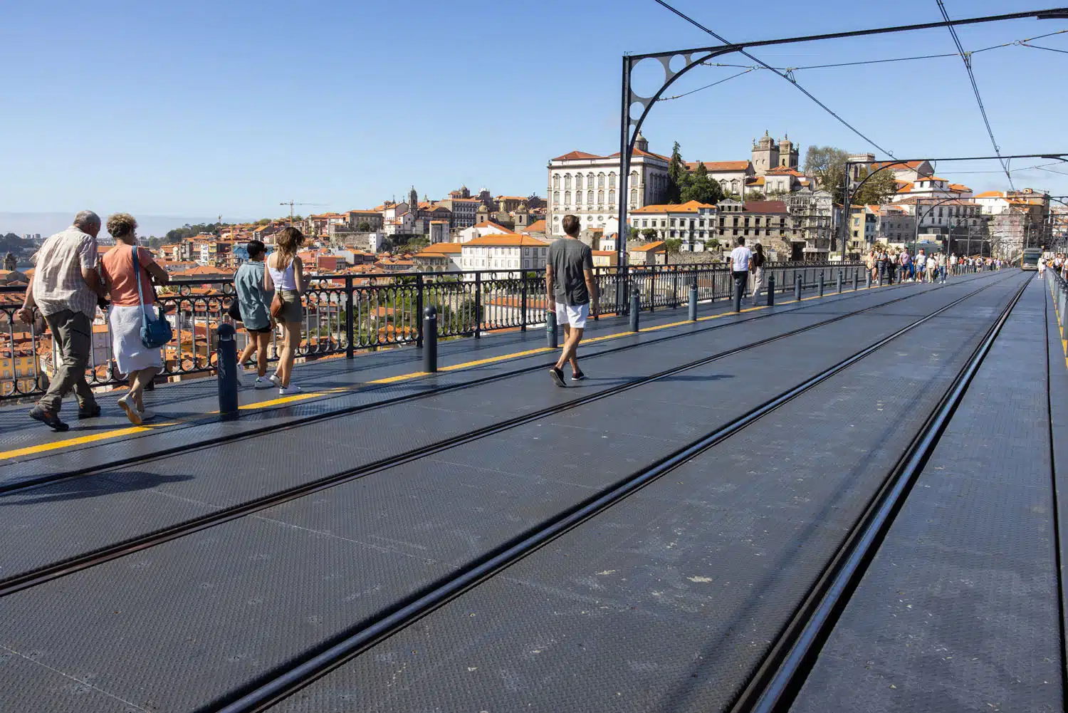 - The upper deck is open to pedestrians and the metro trains. For the best views, walk across the upper deck. The metro trains frequently cross the bridge, but there is a designated pedestrian area. Keep an eye out for the train if you cross the bridge to take photos.