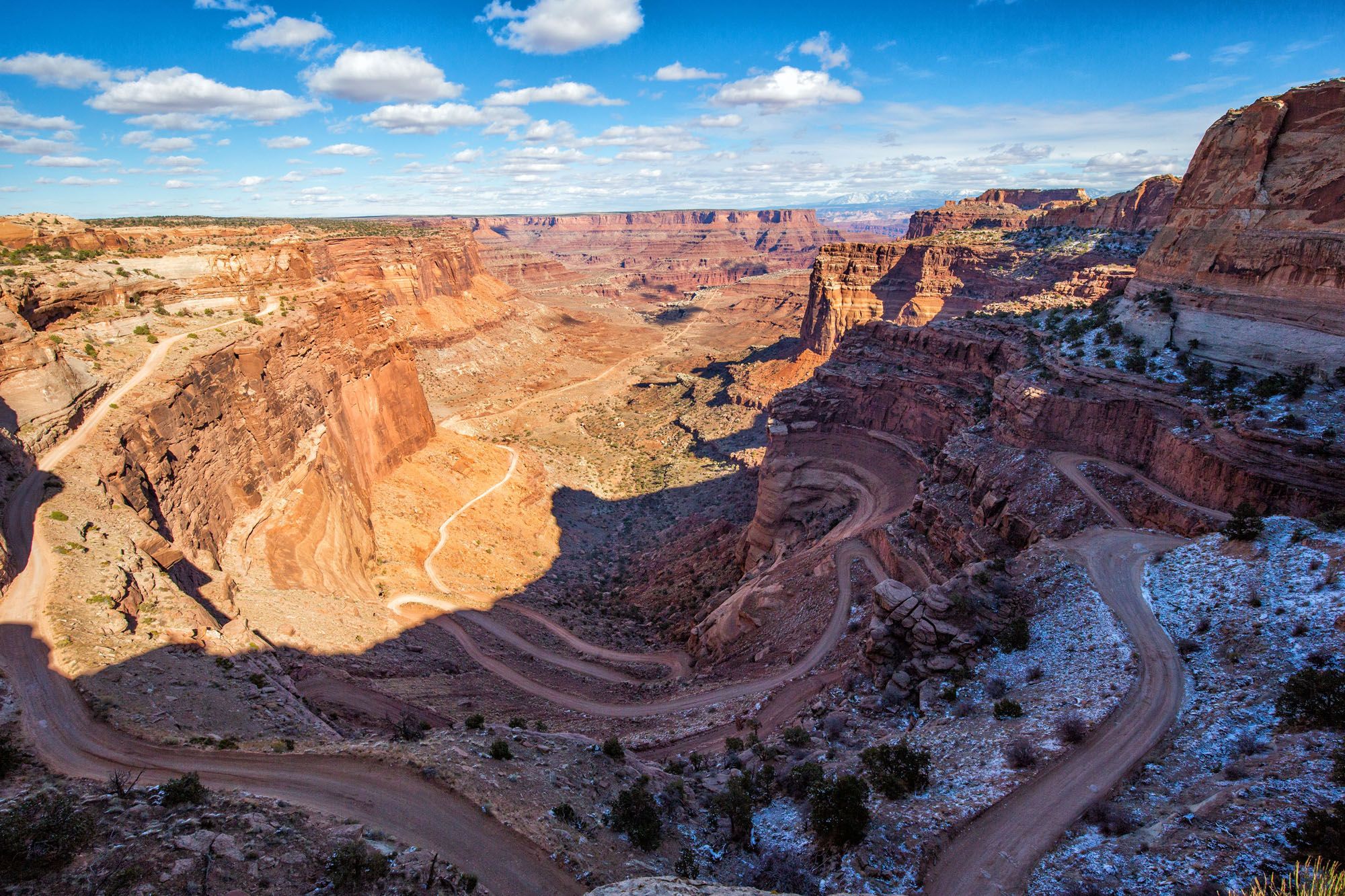 Drive Shafer Canyon Road. If you like scenic drives and white-knuckle roads, this is a good one. From the top of the mesa, Shafer Canyon Road rapidly descends to the White Rim. Itโs tons of fun and the views are incredible. You can extend the experience by adding on the White Rim Road or Potash Road.