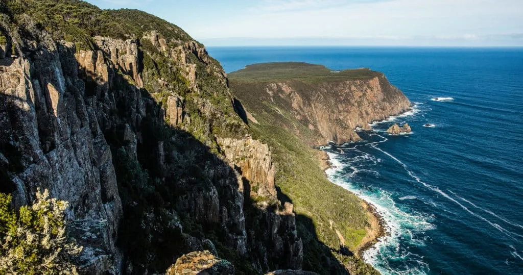 Distance: 14 km (8.7 miles) out-and-back Difficulty: Moderate. This hike would be suitable for most people of average fitness levels. Some of the trail is located along the edge of the cliffs, so keep an eye on children. Allow five hours for this hike. Getting here: This hike is located on the Tasman Peninsula, a two hour drive from Hobart. The trailhead starts at Stormlea. Here are the coordinates for the trailhead and car park: -43.195411, 147.777166