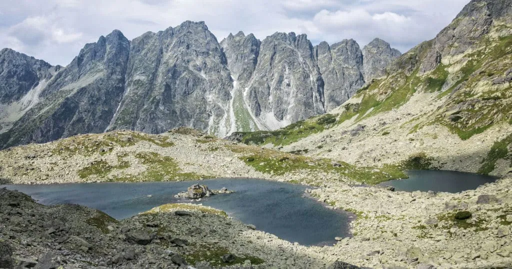 At the top of the switchbacks the trail almost levels out as you walk through a huge field of boulders. To your left are the lakes Malé Zabie pleso and Vel’ké Zabie pleso and in front of you is Rysy.