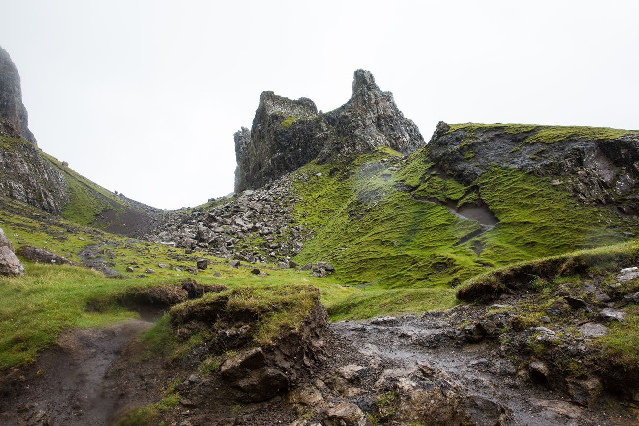 Generally speaking, rain showers do not last long in Scotland. If you arrive at the Quiraing and it is pouring, be patient. Sit in your car and wait for the rain to end. Most likely, this rain will wash away the other visitors, and once it clears up, you may have the trail to yourself. This happened for us several times on the Isle of Skye.