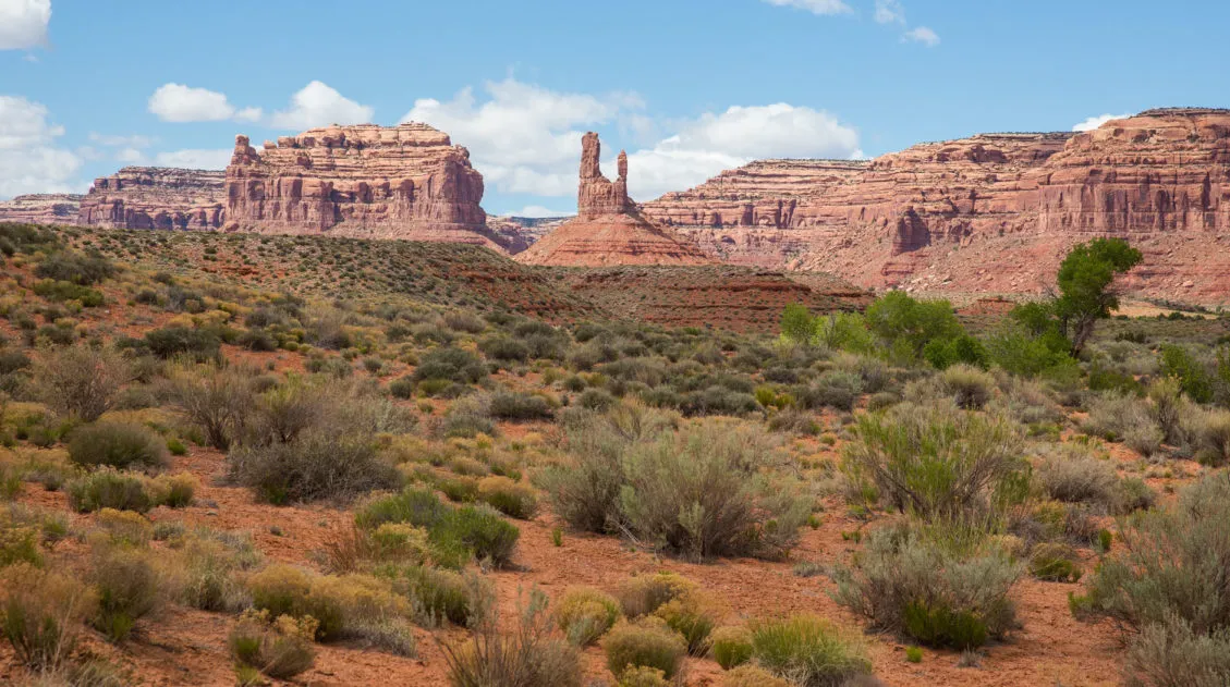 This rock formation is named for its Mexican Sombrero-like appearance. You can see it from US-163 on the drive to the Valley of the Gods. If you want, you can hike up onto the formation.
