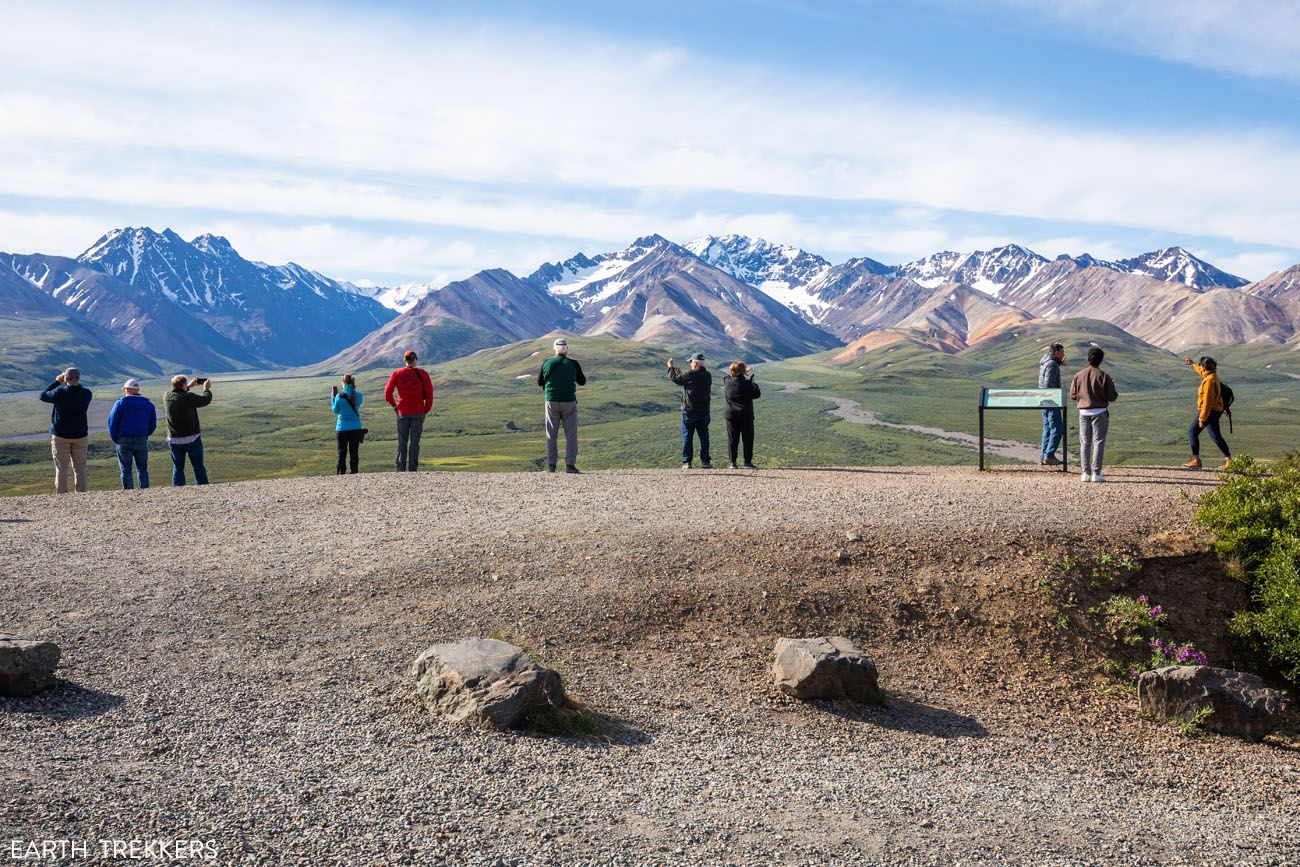 At mile 62, you reach Stony Hill Overlook. This is one of the best places in the park to get a photo of Denali. Denali looks absolutely massive from this viewpoint. If you can get Denali Park Road with a bus on it, you really get a sense of the size of this mighty mountain.