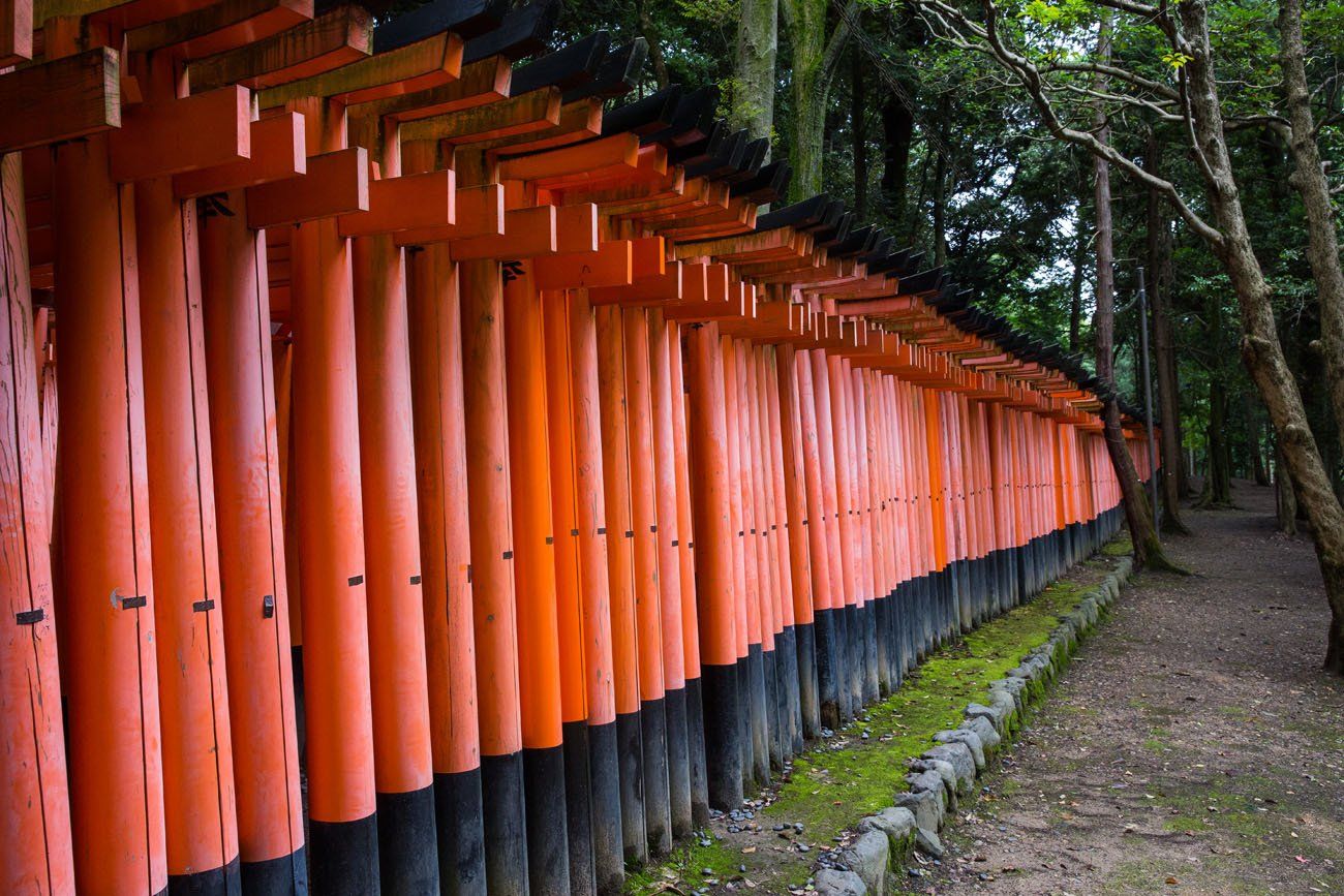 Here, the Fushimi Inari honors the Shinto god of rice. There are over 10,000 torii here, each donated by a company giving thanks for their prosperity and hopes for a prosperous future. The names of the companies are labelled on the torii.