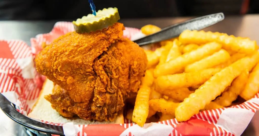 Stand in line again for some of Nashville’s best chicken. You can order your chicken with various levels of spiciness (heat) and add side dishes to your meal. Really want to add some heat to your chicken? I dare you to give their “Shut the Cluck Up” heat level a try. Here’s the menu.